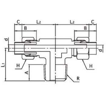 樹脂スリーブインサート付継手(黄銅製) T型ユニオン