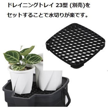 ドレイニングトレイ23型(別売)をセットすることで、鉢植え植物への水やりの際に水切りとしてお使いいただけます。