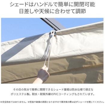 日差しや天候に合わせて開閉できる防水シェードは頑丈なポリエステル製。