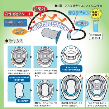 強い直射日光によるヘルメット内部の温度上昇を抑える、遮熱シートタイプのヘルメット用熱中症対策グッズです。太陽光を反射する遮熱構造により、炎天下での作業時の暑さを軽減し、熱中症対策をサポートします。ヘルメットの内側に入れるだけの簡単装着で、特別な工具や加工は不要。軽量で作業の妨げにならず、屋外作業・工事現場・警備など幅広いシーンで使用できます。