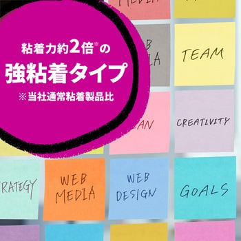 つきにくかったところにも、しっかり貼れる強粘着のポスト・イット付箋です。しっかり貼れるので、大切なメモや伝言がより確実に!ちょっと詳しい伝言、情報整理などに便利なサイズです。しっかり貼れる強粘着タイプだから、伝えたい人に、伝えたい場所で、伝えたいメッセージがきちんと届きます。