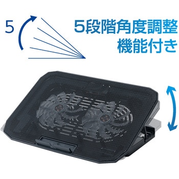 2基のファンでしっかり冷却。コストを抑えたリーズナブルモデル。パンチングメタルスチールと2基のファンで、底面からPCをしっかり冷やす冷却機構。底面から照らすLED搭載。便利な5段階の角度調整機能搭載。ファンコントロール機能とスルーポート搭載。使い方に合わせて選べる2つのスタンドモード。