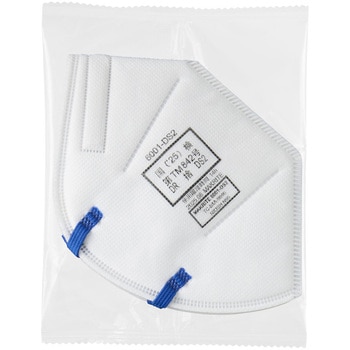 使い捨て式防じんマスク。折りたたみ式。 個包装で衛生的。持ち運びにも便利! 国家検定規格DS2合格品。米国NIOSH規格N95合格品。クッション性の高いノーズフォーム(鼻当て)で、漏れの軽減と快適性を実現。しめひもの長さが調整できるシリコン製のアジャスター付き。顔の形に合わせて調整ができるプラスチック製ノーズクリップ。金属素材不使用のため分別不要。しめひもは超音波接着のため、接合部はステープラー(ホチキス)不使用。金属アレルギーの心配がなく高い耐久性と安全性を実現。