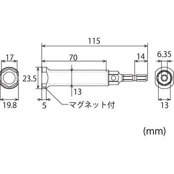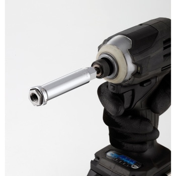2個のネオジム磁石によりナットをしっかり保持。安心・安全でスムーズに作業ができます。電動(6.35mm)・手動(13mm)兼用タイプ対辺13mmのレンチやソケットに接続できます。レンチ接続時用に脱落防止用ボール付