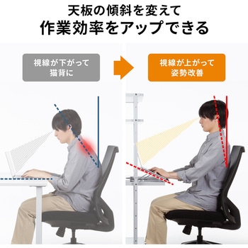 天板の傾斜を変えることで、自然と視線が下がりすぎず、首・肩・腰への負担が減少します。