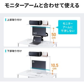 モニター上の空間を活かして棚を設置することでデスクスペースの有効活用ができます。