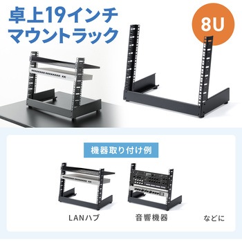 省スペースでAV機器やネットワーク機器をすっきり収納できる、組立簡単な卓上用ラック。8Uサイズ。