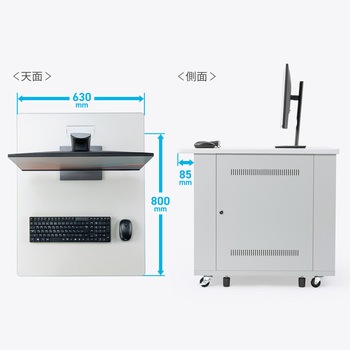天板は本体より広く設計され、パソコン作業や機器操作などを快適に行える広々とした作業スペースを確保しています。