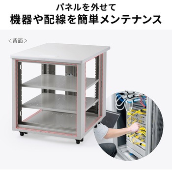 サイドパネルとバックパネルは取り外し可能で、メンテナンス時の配線や機器交換が容易に行えます。