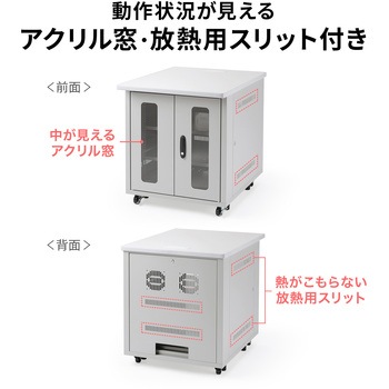 前扉はアクリル窓付きで、扉を開けずに内部の稼働状況を確認でき、点検がスムーズに行えます。