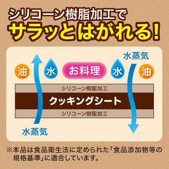 無漂白クッキングシートは両面シリコーン樹脂加工をしていますので、両面使えます。油や水を通しにくいので天板や皿などを汚さずにパン、オーブン料理がきれいに仕上がります。水蒸気を適度に通しますので、蒸し料理などに便利です。お料理がサラッとはがれて型くずれしません。