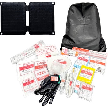 ソーラーパネル付きの災害時に必要なものを取りまとめた 避難リュックセット