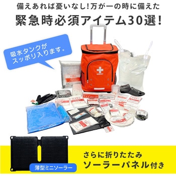 用途防災セット 避難セット 避難リュック 避難袋 防災グッズ 地震 災害 非常用持ち出し袋 キャリーバッグ リュックサックセット内容リュックバッグ、キャリー、フックロープ×2、ツイストアップランタン※、緊急携帯トイレ×3、レインポンチョ、給水タンク15L、綿棒×20、予備袋、割り箸×5、紙皿×3、プラカップ×5、ラップ、簡易エアーマット、ティッシュ、ボディタオル、ポリ袋45L×3、歯ブラシ×3、マスク×3、綿ロープ7m、アルミブランケット、ミニカッターナイフ、ナップサック、空気入れ、ラバー手袋、EVAサンダル、ホイッスル、アルミシート、防災筆記セット、コロタイヤカバー色レッド寸法(幅W×奥行D×高さH)(cm)34×27×43内容量1セット