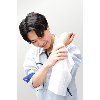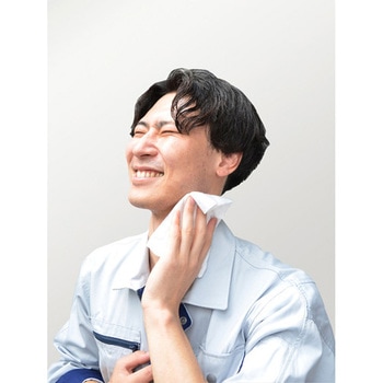 布タオルのような肌触りのひんやり不織布で、汗・べたつきをすっきり拭き取ります。