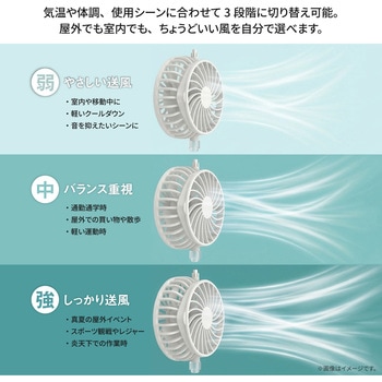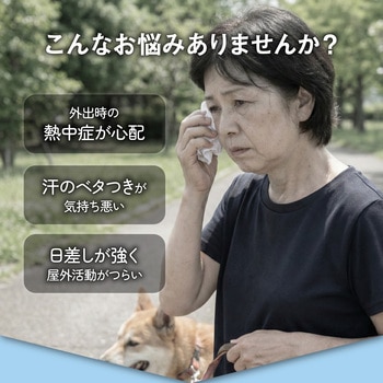 付属品充電ケーブル×1(USB Type-A⇔USB Type-C)、保証書付取扱説明書材質PP材質、ポリエステル繊維、発泡複合材、電子部品質量(g)約182サイズ(cm)【つば】約14、【あごひも】最大約56回転数(min-1[r.p.m])6500(最大)電源充電式リチウムイオン電池幅(cm)【ネックガード】約50、【フェイスカバー】約23定格入力電圧(V)5風量調整3段階(+ソーラーモード)高さ(cm)【ネックガード】約27、【フェイスカバー】約29充電時間(時間)約3モード【ソーラー】内蔵バッテリーを消費せず、ファンを駆動することが可能です。1.ソーラーモードボタンを長押しします。※室内や曇雨天時には使用できません。2.ソーラーパネルに十分な太陽光が直射されると⚡;マークが緑に点灯し、ファンが駆動します。※太陽光の強弱により、ファンの風量が上下します。3.終了時は、電源ボタンを4回押す。またはソーラーパネルに太陽光が直射しない状態にしてください。バッテリー容量(mAh)1000充電方式ソーラーファン側面にあるUSB Type-Cポートに充電ケーブルのUSB Type-Cコネクタを接続し、ACアダプタなどの電源供給可能なType-AポートにType-Aコネクタを接続します。バッテリー残量表示が1.00%になったら充電可能です。、※本製品を充電しながらの使用はおやめください。バッテリー劣化の原因になります。※接続機器の電源供給能力が低い場合、充電時間が極端に長くなることがあります。※完全放電すると充電できなくなる場合があります。3か月に一度程度の充電をおすすめします。※付属の充電ケーブル以外は使用しないでください。※他の充電ケーブルでは正しく充電できない場合があります。使用後の手入方法1.帽子からソーラーファンを取り外します。※指をはさまないようご注意ください。2.つば部分を避けて水洗いしてください。※洗剤は使わないでください。※必ずファンをお取り外しの上でお手入れをお願い致します。3.ご使用再開時は、ソーラーファンの取り付け部が帽子のはめ込み部にカチッと音がするまではめれば装着完了です。連続動作時間最大14時間(風量1段階)※使用環境により異なります頭囲(cm)約53~58深さ(cm)【頭周り】10内容量1個