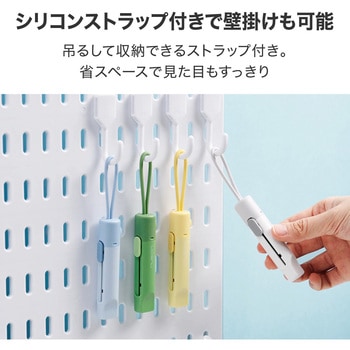 吊るして収納できるストラップ付き。