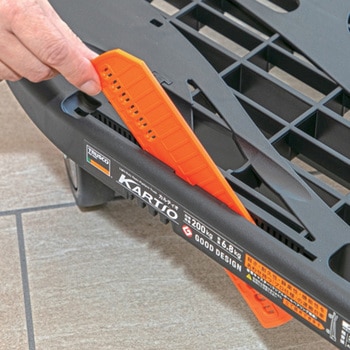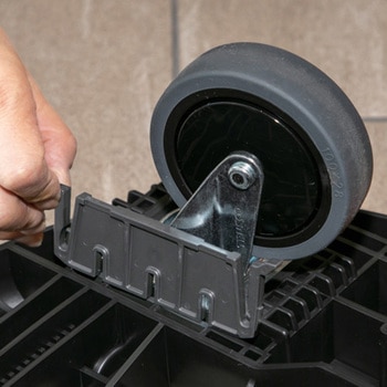 荷台:再生ポリプロピレン(PP)再生材100%、ハンドル:アルミ、キャスター金具:スチール、車輪:エラストマー樹脂