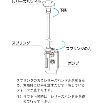 過負荷防止装置付き、早送り装置付き(約20%の荷重で自動的に切り替わります)、レリーズハンドルにスプリングバック機構付、油圧シリンダー