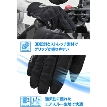 操作性を考慮したプロテクター配置により、握る動作を妨げにくい構造。長時間のツーリングでも負担を抑えます。
