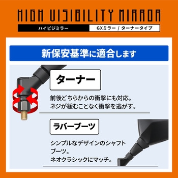 保安基準対応のミラー面積とターナー機構を備えています。