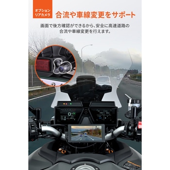 モトスマートモニター551(品番:25043)専用設計のリアカメラ。車両後方の映像をモニターに表示し、走行中の状況確認をサポートします。1920×1080Pの解像度により、後方映像を鮮明に表示。視野角130°のワイド設計で、後方の状況を広くカバーします。IPX6相当の防水性能を備え、雨天時の走行にも配慮した設計です。