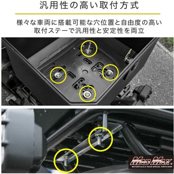 通勤通学時の必需品!雨具を入れたりヘルメットを収納したり用途は様々です。ボックス本体は付属の取付ステーで固定します。