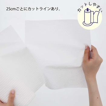 キッチンで便利な厚手タイプの不織布ペーパータオルです。繰り返し使えて経済的。洗って2・3回程度使用可能です。食器拭きや野菜の水切り、キッチン周りのお掃除にもお使いいただけます。吸水性抜群。カットもしやすい仕様です。厚手タイプなので絞っても、拭いても破れにくいです。表面に強エンボス加工を施し、拭き取り力をアップ。キッチン、水まわりのお掃除にも便利です。