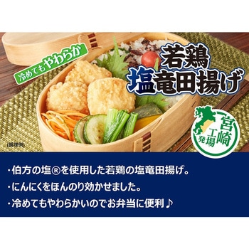 若鶏を使用した”塩”竜田揚げです。塩は「伯方の塩」を使用し国内工場で製造しています。お弁当のおかずはもちろん食卓のおかずとしても使いやすい塩竜田揚げです。料理の時間も短縮出来てメニューの幅も広がります♪