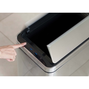 手をかざすだけで開くセンサー式ゴミ箱です。