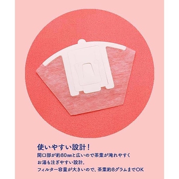 緑茶・ハーブティー・ウーロン茶・緑茶などに!セットも後始末も簡単な、簡易式ドリッパー。お気軽に本格派の味と香りが楽しめます。急須は不要。カップの上に乗せるだけ。開口部が大きいので、茶葉やお湯が入れやすい。扇型なので、リーフが広がり茶葉本来の風味が引き出せます。深さもあるのでしっかりお湯に浸かる。浸す時間でお好みの濃さに調整できます。素材は40年以上の実績があるお茶パックと同じ。安心安全。