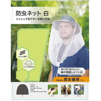 帽子のツバ部分を利用した、顔部分の虫刺され対策に便利な防虫ネットです。