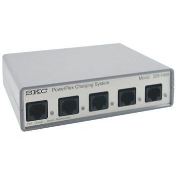 PowerFlex(R) 5-station Battery Chargerは、100-240 V対応で電源および電源コードが付属し、SKCのNiCadまたはNiMHバッテリー駆動式空気サンプルポンプ全機種に使用できます。ポンプ別の専用ケーブルは別途購入が必要で、AirChek(R) 2000用はCat. No. 223-1001、Universal(5セル)用はCat. No. 223-1002、Universal(4セル、MSHA)用はCat. No. 223-1003、AirChek 52用はCat. No. 223-1004、222 Series Low Flow用はCat. No. 223-1005に対応します。本製品は米国製ポンプモデル専用で、EXおよびATEX認証モデルには対応していません。