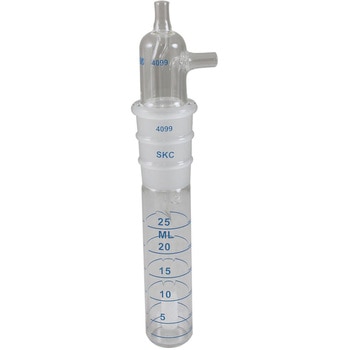 ガラス製ミジェットインピンジャーは、既知の空気量を気泡としてチューブ内に通過させ、汚染物質を液体捕集媒体中に捕集します。捕集された液体を分析することで空気中濃度を求めます。インピンジャーは空気採取ポンプの側面に取り付けて使用することも、作業者の呼吸域付近でホルスターに収納して使用することも可能です。