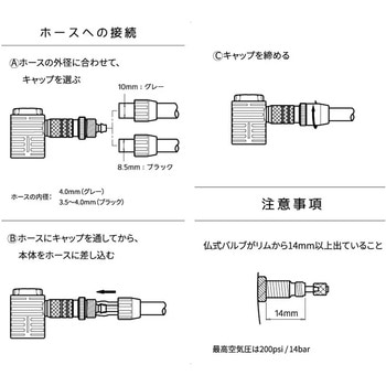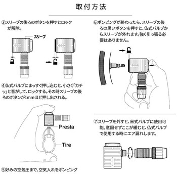 対応バルブ:仏式、米式 (先端の筒を反時計側に回して外すと、米式対応)