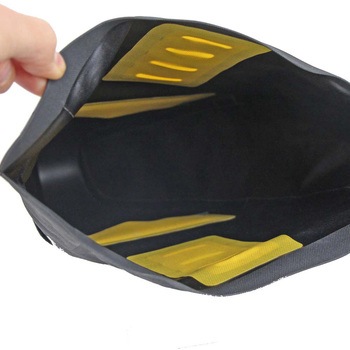 縫製ではなく溶着することで、縫い糸の穴が無く、防水性が高いタイプ。携帯工具、軽量輪行袋、着替えを入れるのにちょうどいい。