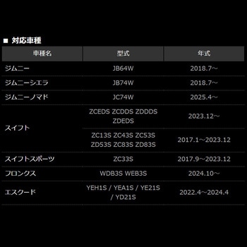 用途ラグジュアリー・ドレスアップ・内装パーツ・カーインテリア適合車種ジムニー・ジムニーシエラ・ジムニーノマド・スイフト・スイフトスポーツ・フロンクス・エスクード ※型式や年式などの詳細は対応車種一覧をご確認ください。内容量1個