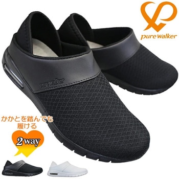 脱ぎ履きが楽々の2wayタイプのナースシューズです。かかとを踏んで履くことができ、軽量タイプ、片足重量約155g。インソールには抗菌防臭加工済。更にエアクッションソールで衝撃を吸収。疲れにくい高さの3.5cmヒールを使用。医療関係やオフィス履きにオススメです。