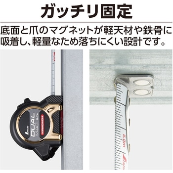 爪と本体底面にネオジム磁石が付いているため、軽天・鉄骨作業時などに寸法取りを1人で行うことができます。
