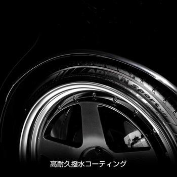 水滴を瞬時に弾き、汚れの付着を抑え、タイヤの美しさを長く保ちます。