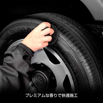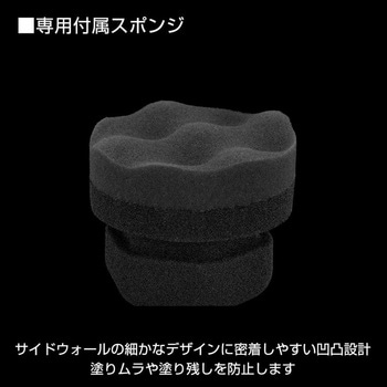 高粘度に仕上げることで、液垂れを抑え、ホイールやボディへの飛び散りも防止。専用スポンジで簡単に塗布できます。