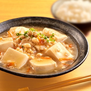 ご飯がすすむ 魚介の旨み 旨塩あんかけ。国産鶏ひき肉がたっぷり入ったあんかけ豆腐の素。中華風の味付けにかきほたての旨みを効かせたご飯がすすむ味わいです。