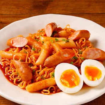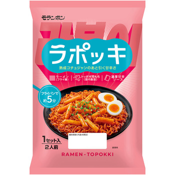 人気の韓国グルメ「ラーメントッポッキ(トッポギ)」がおうちで楽しめるセットです。ラーメンとトッポギ用もちに熟成コチュジャンが効いた濃厚甘辛ソースがからみつくとまらないおいしさです。