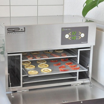 キハラのSP-1は、コンパクトな家庭用食品乾燥機です。新鮮な食材をおいしく長持ちさせるエコな食品作りに挑戦してみませんか?あなたのアイディアで新しい料理のレパートリーを増やしましょう。「干す」ことは、素材を美味しくする魔法の調理法。野菜やきのこ、フルーツなどは干すことでグンとおいしくなり、きのこは干せば極上の出汁がとれますし、ドライフルーツの甘さには「干しただけなのに!?」といつだって驚きます。また水分が抜けた分、炒め物や揚げ物の調理時間が短縮できる、しっかり干して水分を飛ばせば長期保存が可能。干すことで栄養価が凝縮され、少量でたくさんの栄養がとれ、素材を干すと良いことばかりです。ぜひトライしてみてくださいね。