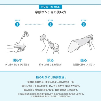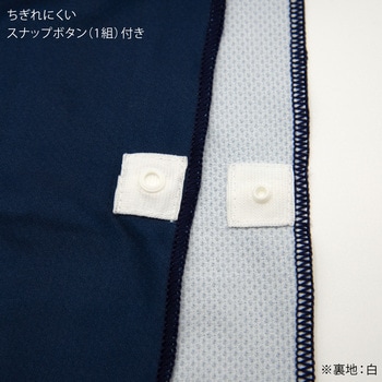 接触冷感素材が、体に心地よい涼しさをキープします!濡らして絞って強く振るだけで、ひんやり感がすぐに広がります。UVカット率98%・UPF50+で紫外線からお肌を守ります。スナップボタンはちぎれにくい構造ですので、安心してご使用いただけます。