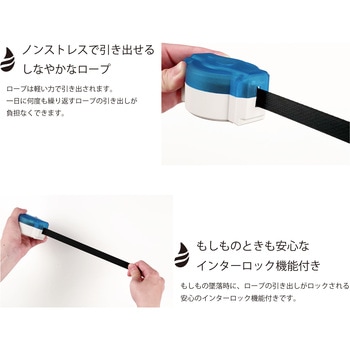 もしもの墜落時にロープの引き出しがロックされる、安心のインターロック機能付きです。