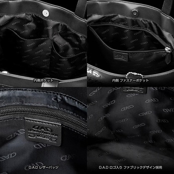 D.A.D ロゴエンブレム上質なレザー × 質感高い型押しデザインD.A.D レザーチャーム付き。内側ポケット・内側ファスナーポケットで仕分けに便利!ロゴ入り インナーフック。D.A.D ロゴ入りファブリックデザイン採用
