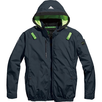 遮熱・UVカット素材に耐久撥水・防汚加工をプラス。着脱可能フードと風抜け抜群のワイドネックを一体化。熱中症対策に配慮した実用的な3ヵ所の保冷剤ポケット