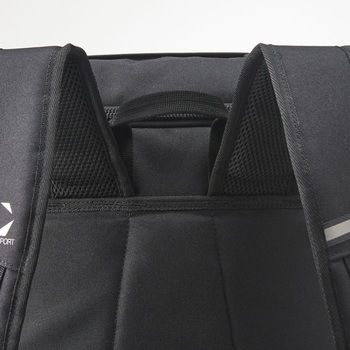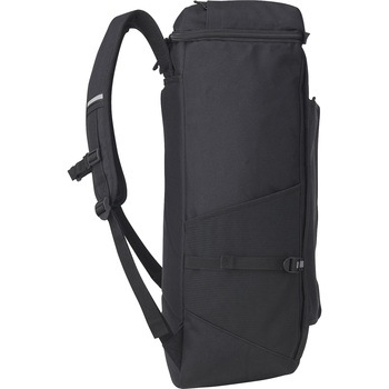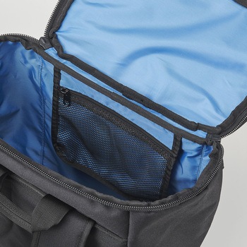 本体にはっ水加工を施した生地を使用した総容量40Lのスクエアバックパックです。肩にフィットする形状のショルダーハーネス構造。本体内側にはクッション性のあるPC/タブレットポケットを搭載しており、重いアイテムを背中側に収納することで、肩への負担を軽減します。チェストベルトを装着すればより安定したフィット感で着用できます。本体内側にメッシュの吊りポケットを、前面にはファスナーポケット、両サイドには500mlのペットボトルの収納も可能なメッシュポケット、アクセス便利な蓋部ポケットと充実の収納力です。あまり荷物を入れない時は、両サイドのベルトで容量の調節が可能です。ショルダーハーネス部の左側と両サイドのベルトに、リフレクターを搭載しています。