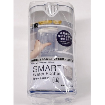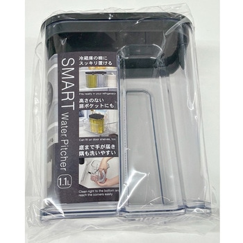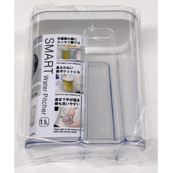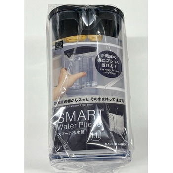 冷蔵庫の棚にスッキリ置ける、コンパクトな冷水筒。1Lサイズ。日本製。持ちやすく、注ぎやすく、収納しやすく、洗いやすい。スマートに使えます。手軽に水分補給できます。モノトーンでおしゃれです。本体はしっかりした厚みのあるAS樹脂製。本体はきれいなクリア。中身がそのまま見えてわかりやすい。パッキンがないから洗いやすいです。