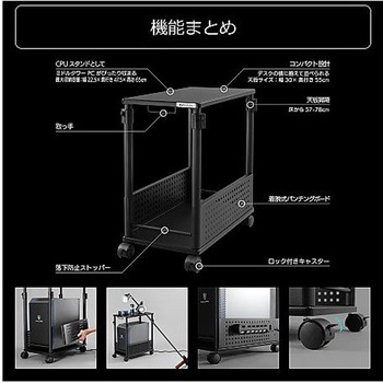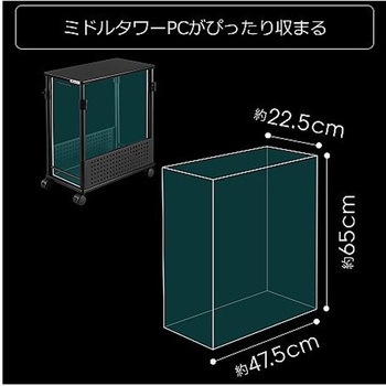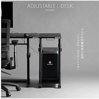 ミドルタワーPCがぴったり収まる。(無駄を削ぎ落として使い勝手を向上した、コンパクト仕様。一般的なミドルタワータイプのデスクトップPC(奥行き47cmまで)がぴったり収まるサイズ感です。)天板の高さ調節(あらゆるゲーム環境やプレイスタイルに対応する、無段階の昇降機能を搭載床から57~78cm(21cm幅)の範囲で高さを調節できます。メインデスクと高さを揃えれば、天板を拡張して広々とした作業領域を確保することが可能です。)デスク横に揃えて設置(天板サイズは、横30×奥行き55cm。バウヒュッテの昇降式ゲーミングデスクと同じサイズ感の奥行きで、横に並べた際に天板を揃えて設置しやすくなりました。高さも合わせれば、すべてがシンデレラフィットした美しいデスク環境を構築することが可能です。)メンテナンス性の向上(昇降式L字デスクシリーズ初となる、オープンフレーム構造を採用。サイドの補強バーをなくしたことで、格納したPCへのアクセスが容易になりました。両側のパンチングボードも取り外しが可能で、メンテナンス時も楽に作業できます。)大切なPCの保護に(災害時などにおける転倒・破損リスクの低減に。床から浮かせて設置することで、埃の吸い込みを抑える効果も。)スムーズな移動(取っ手&キャスターが付属し、PCを搭載したまま移動できる。掃除や配線のメンテナンスにも楽々対応。※移動時はケーブルの扱いに注意。)
